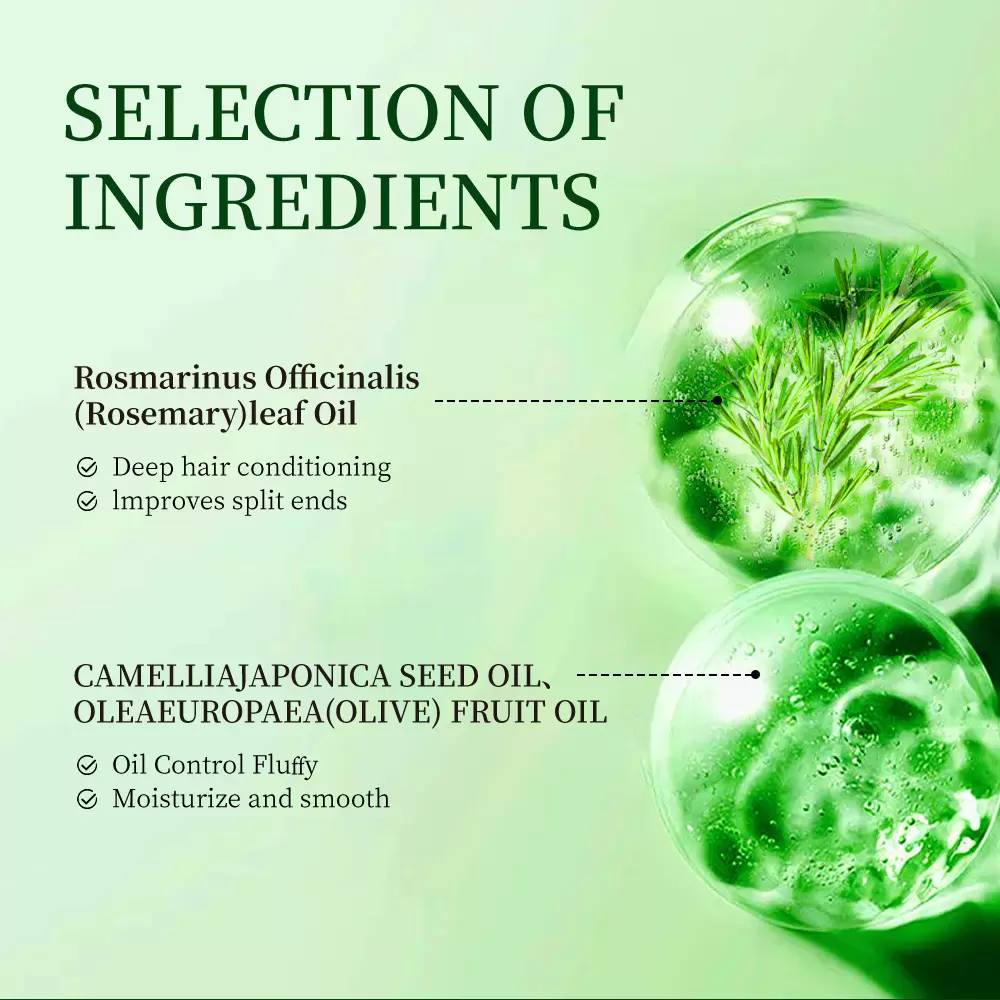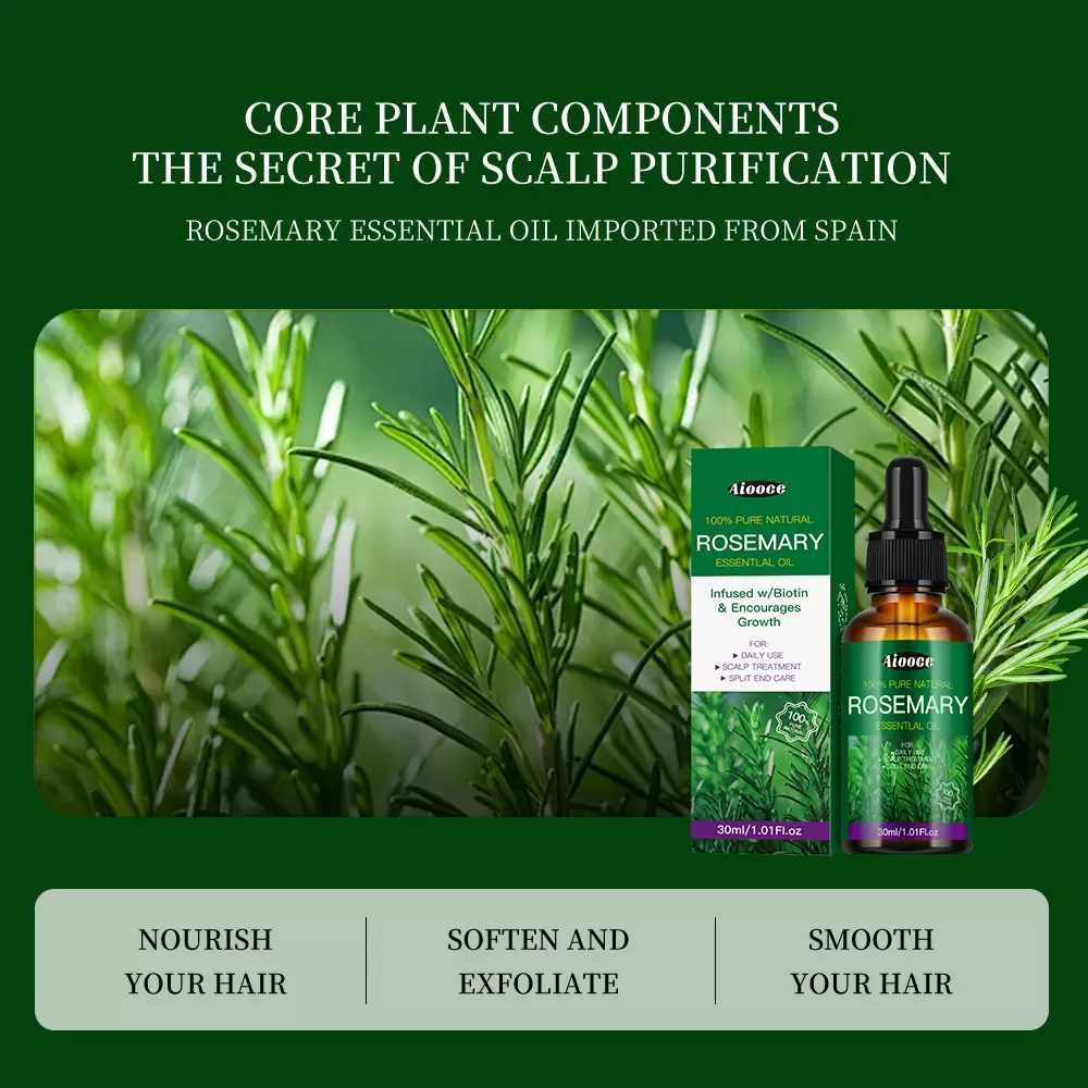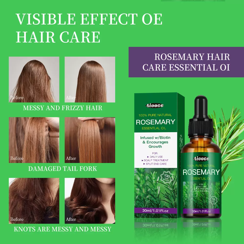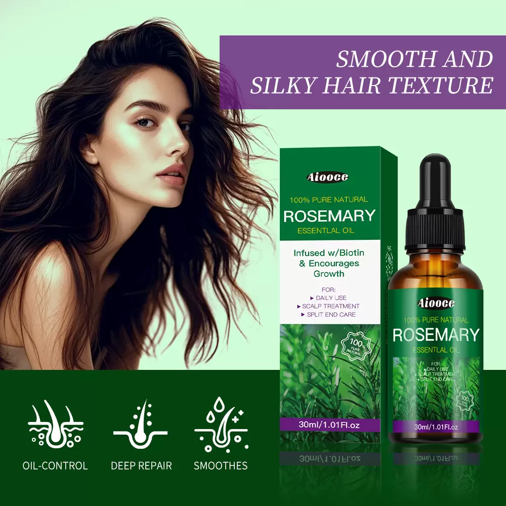 Aiooce Rosemary Hair Care Essential Oil, with Bataine Extract, helps improve frizz, strengthen hair, and makes it soft, smooth, and voluminous.