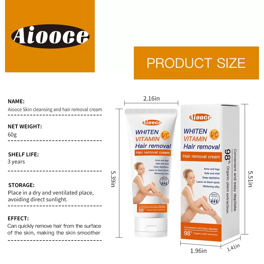 Aiooce Skin-Caring Hair Removal Cream, Moisturizing, Convenient and Smooth, Underarm and Leg Hair Removal Cream