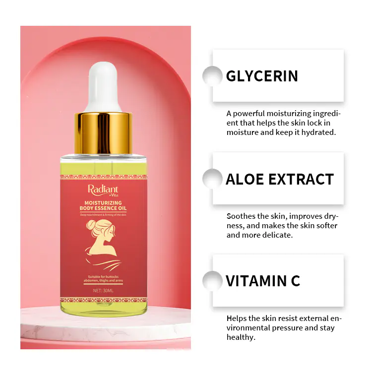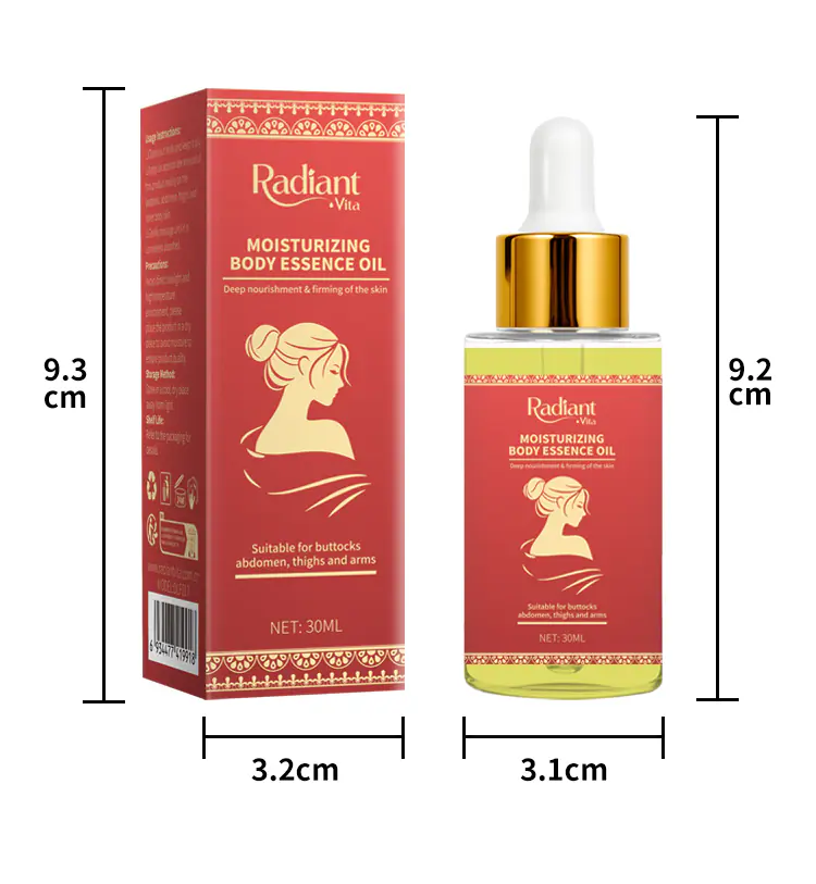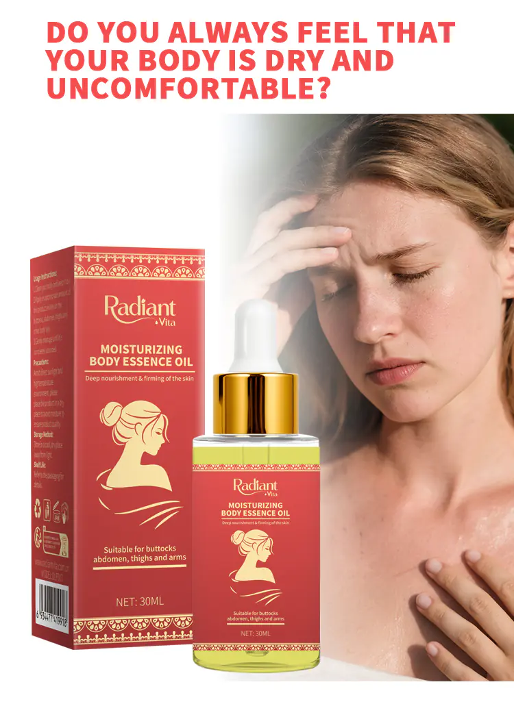 RadiantVita Hydrating Body Oil is a luxurious, fast-absorbing formula that delivers deep moisture and restores radiance to dry, dull skin. Enriched with natural plant oils, it nourishes and softens without leaving a greasy residue, making it ideal for daily use. This versatile body oil helps improve skin elasticity, lock in hydration, and enhance your natural glow. Gentle enough for all skin types, it provides lasting comfort and a silky-smooth finish. Use after bathing or mix with your favorite moisturizer for an added boost of hydration and luminosity.