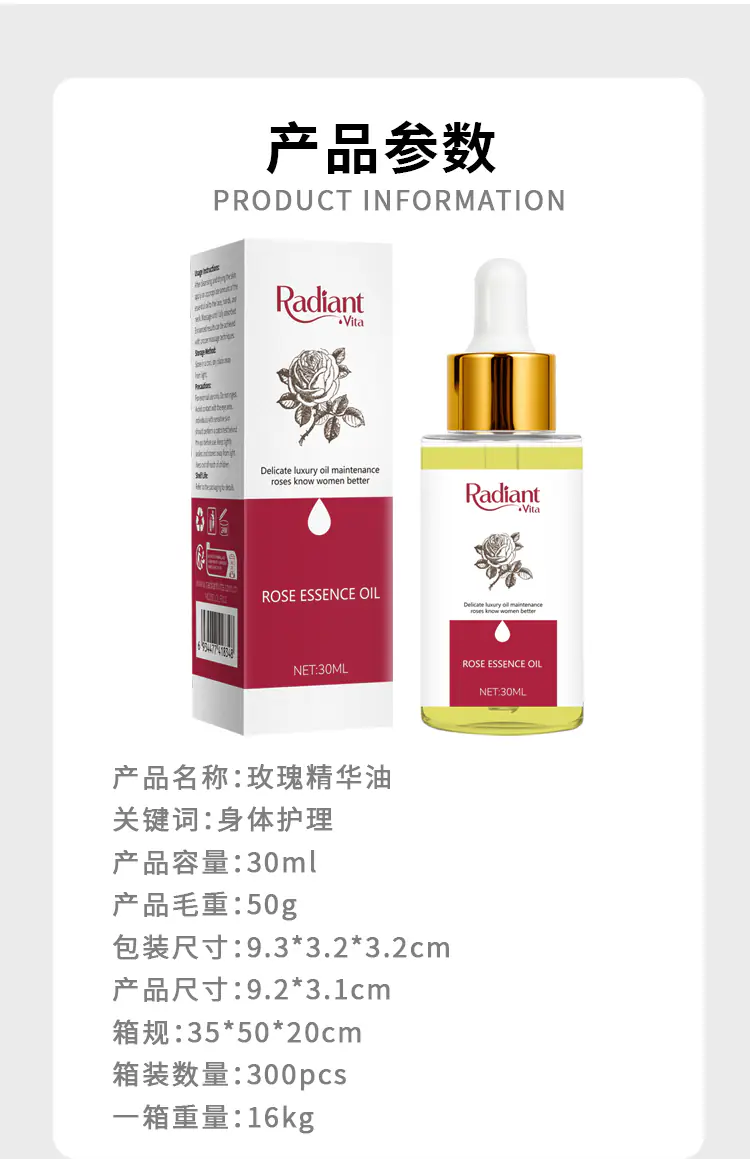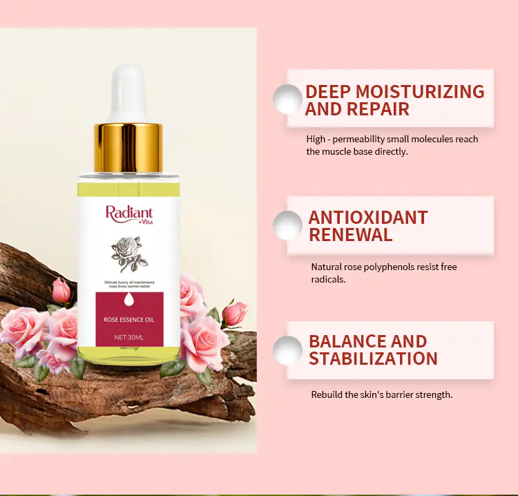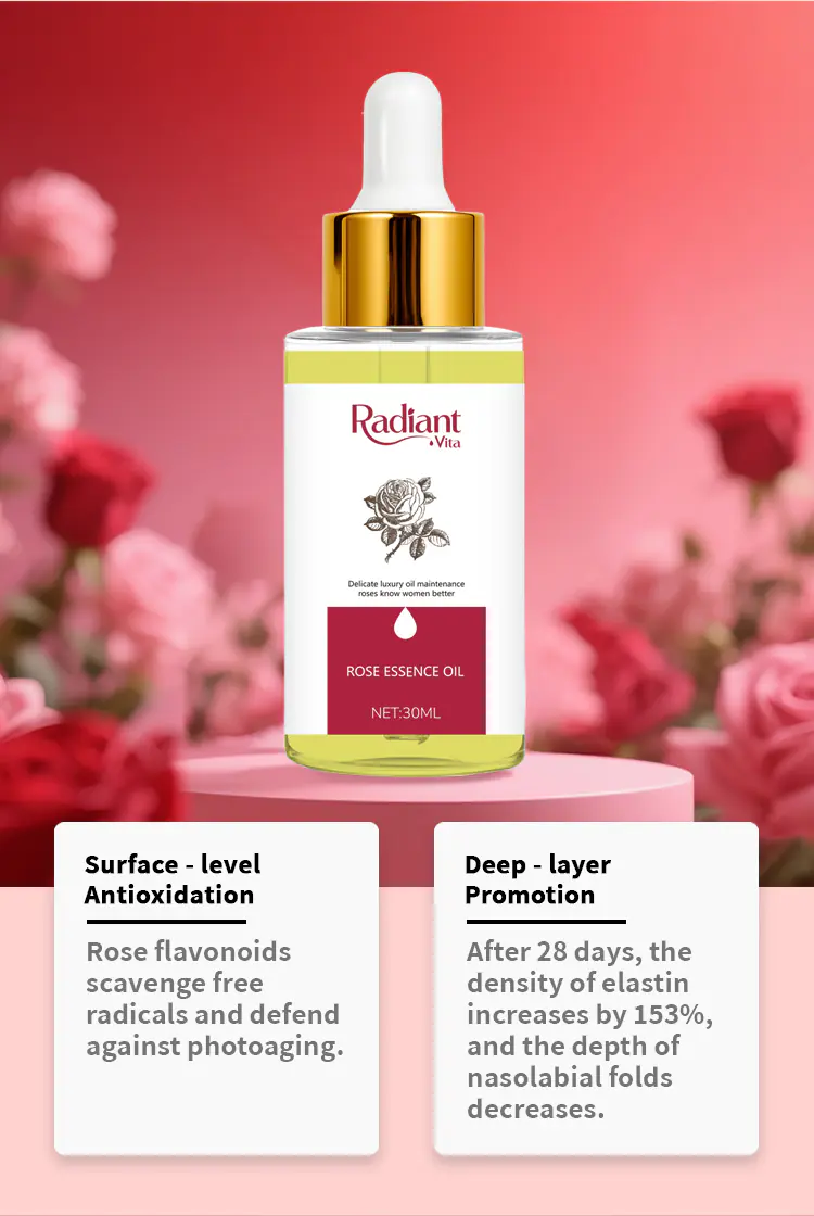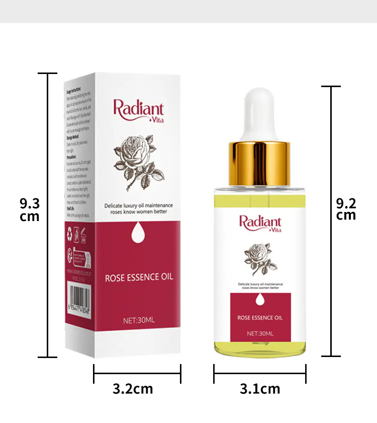 Experience the luxury of Radiant Vita Rose Oil, a potent anti-aging serum designed to rejuvenate tired, dry skin. This organic formula is rich in Vitamin C and essential fatty acids, working overnight to repair the skin barrier and lock in deep moisture. It effectively reduces the appearance of fine lines, wrinkles, and dark spots, promoting an even skin tone. Packed with antioxidants, it defends against environmental stressors and pollution. Whether used as a daily moisturizer or a glow-boosting facial oil, it restores radiance and softness. Suitable for all skin types, this clean beauty essential transforms dull complexions into dewy, youthful-looking skin without leaving a greasy residue.