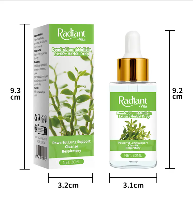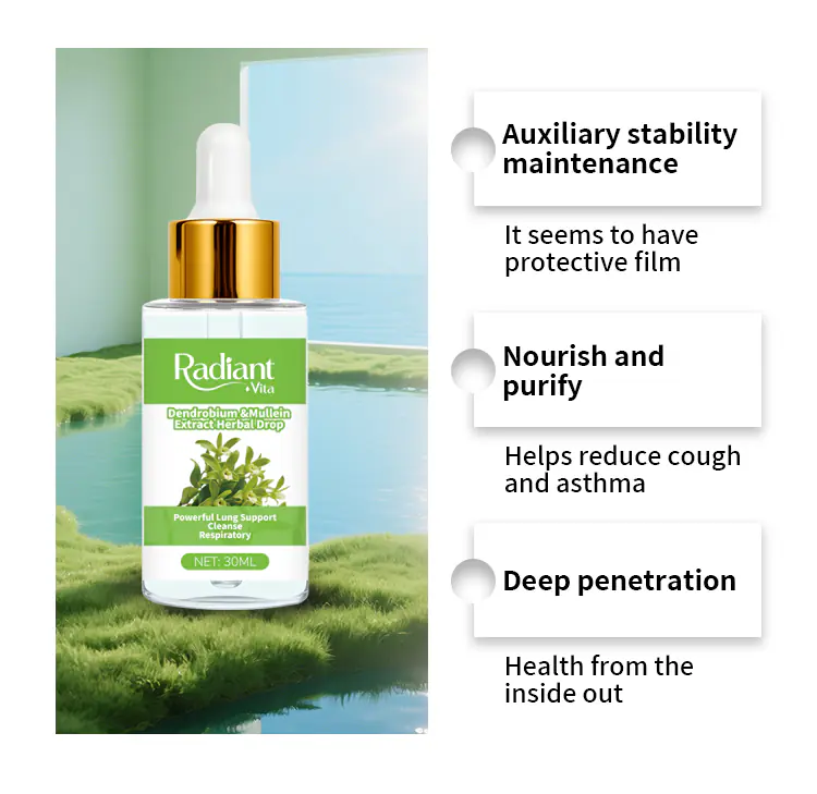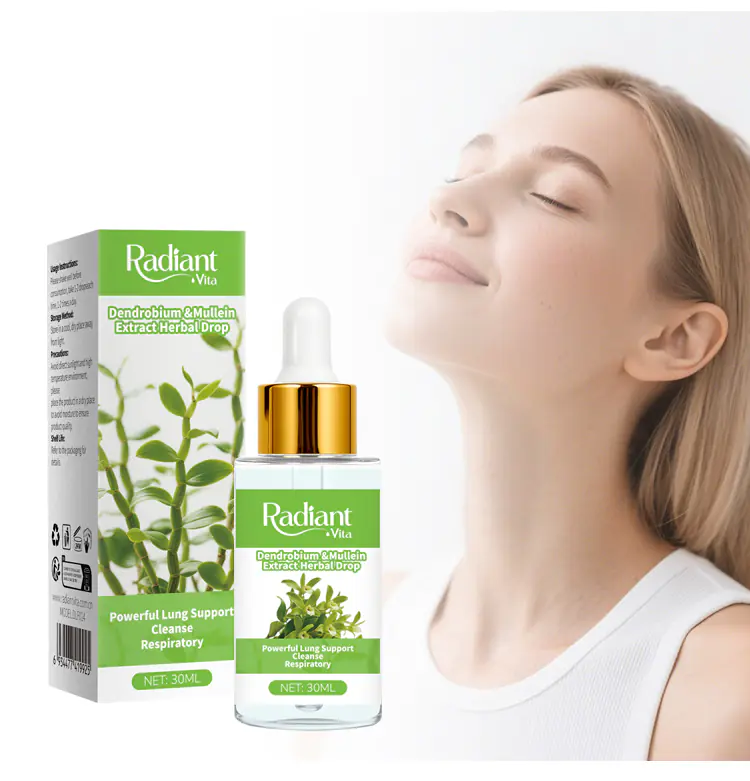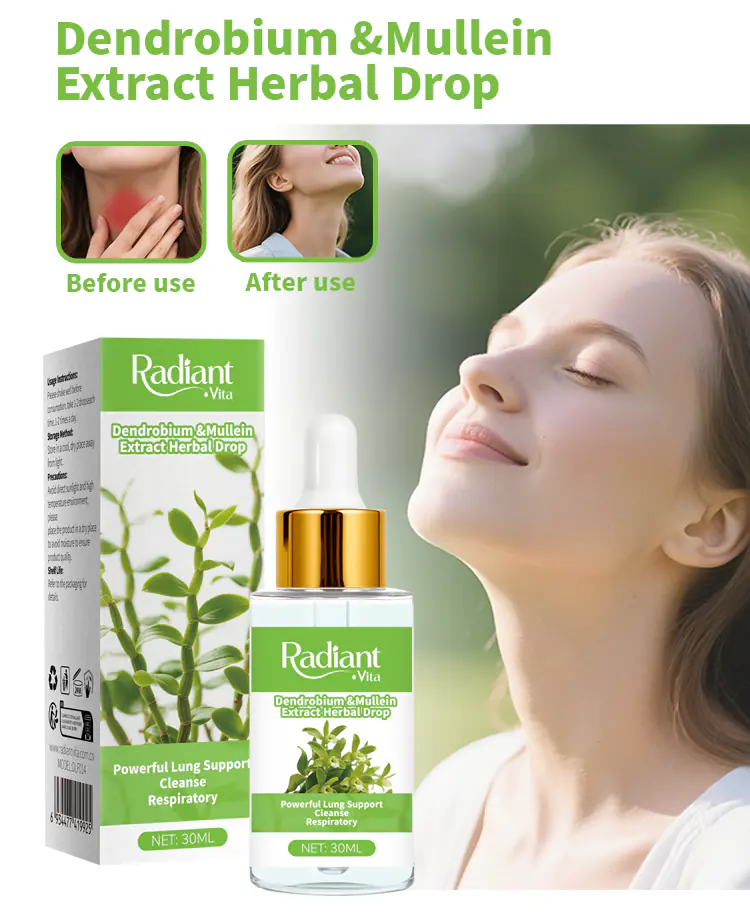 RadiantVita combines potent Dendrobium and Mullein extracts in a fast-acting herbal formula designed to support respiratory wellness. The sublingual drops work by stimulating the lungs and respiratory system through the bloodstream, helping to dilute mucus in the trachea and lungs while promoting the expulsion of sputum and residues within hours . This natural lung health essence also aids in soothing the respiratory tract, reducing allergic reactions, and maintaining clear airways . Formulated with natural ingredients, RadiantVita offers a gentle yet effective solution for those seeking to breathe easier and support overall pulmonary function daily.